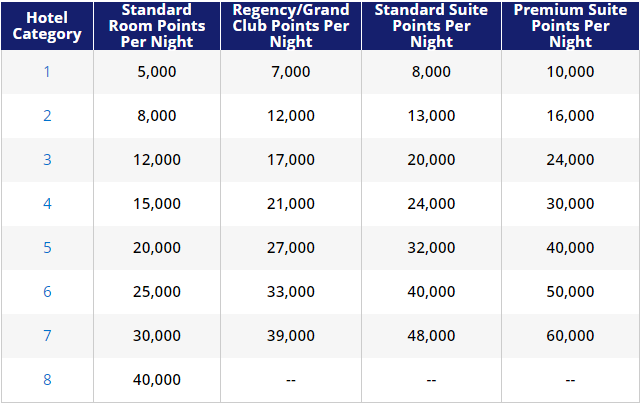 Let’s look at an example. The above chart tells you that if you’re not getting at least 1.5 cents per Hyatt point, you should use cash. The Hyatt award chart prices its hotels as follows: